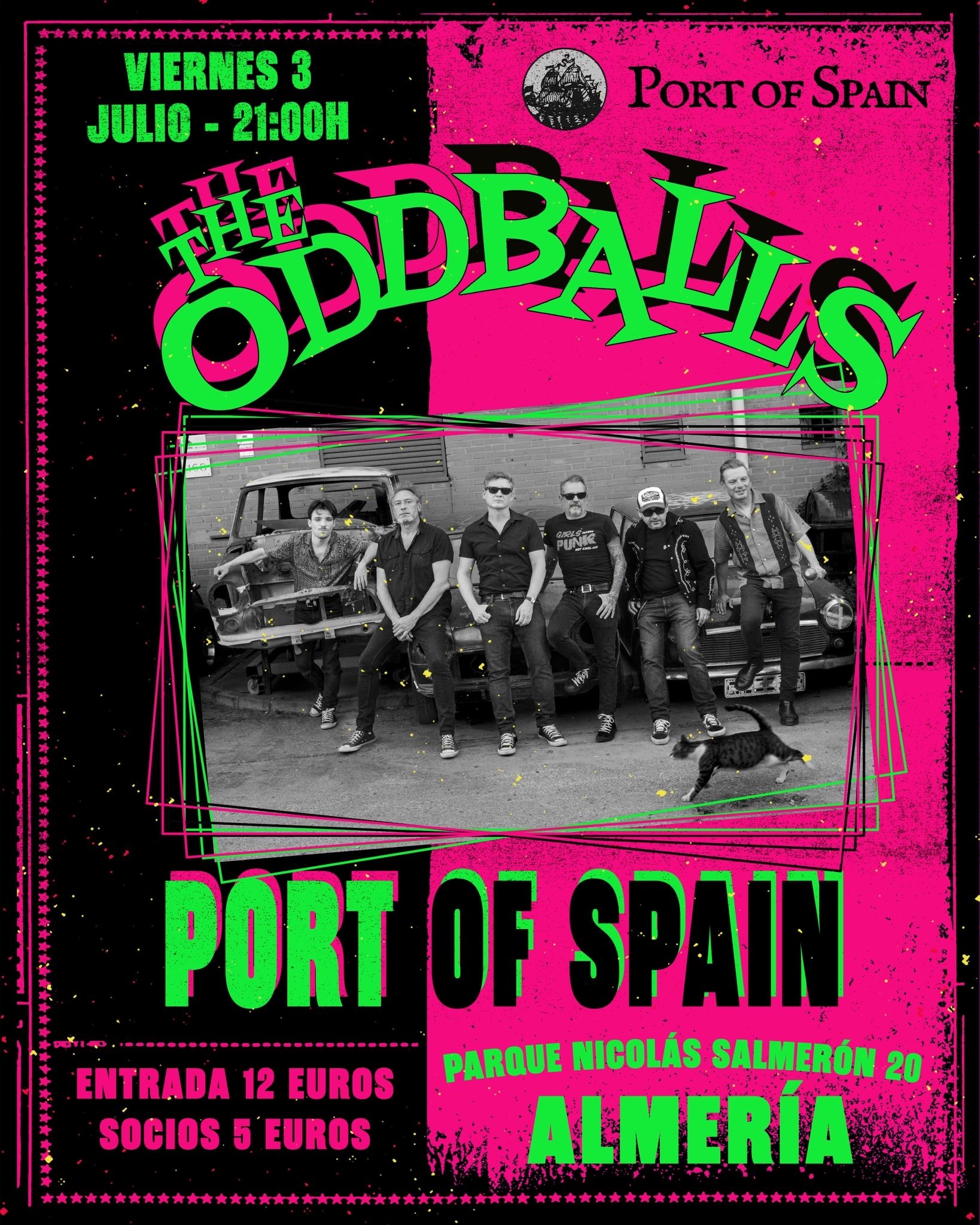 Los Oddballs son una banda de Garage-Punk-Rock»N»Roll malagueña, con más de 10 años de trayectoria. Formada por miembros de Puño Americano & his Puñettes, Toxic Womb, Hairy Nipples, The Hollers o Blackberry Clouds, han actuado por toda España, Portugal, Inglaterra… De ellos dijo Diego R.J (El Sótano de Radio ·) «Son como el tren de la juerga que va directo al infierno». Sus constantes aventuras tanto encima como abajo del escenario, les han hecho un nombre en la escena europea. Seis animales del directo encima del escenario que no te querrás perder!!